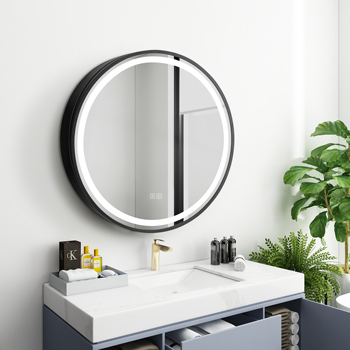 Botiquín redondo con luces Led Botiquín con espejo de gabinete desempañador para baño Anti-niebla 3 luces de color