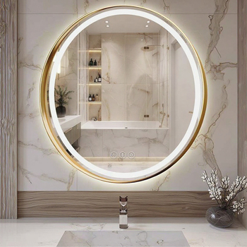 Espejo de baño LED redondo dorado con 3 luces de color enmarcado espejo circular con luz frontal espejo de maquillaje regulable con antivaho